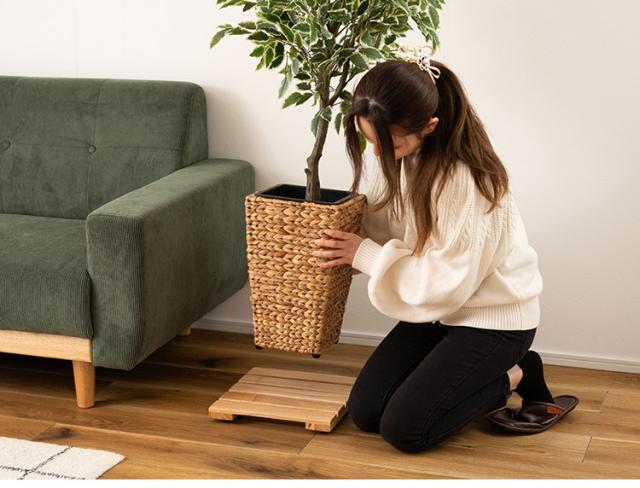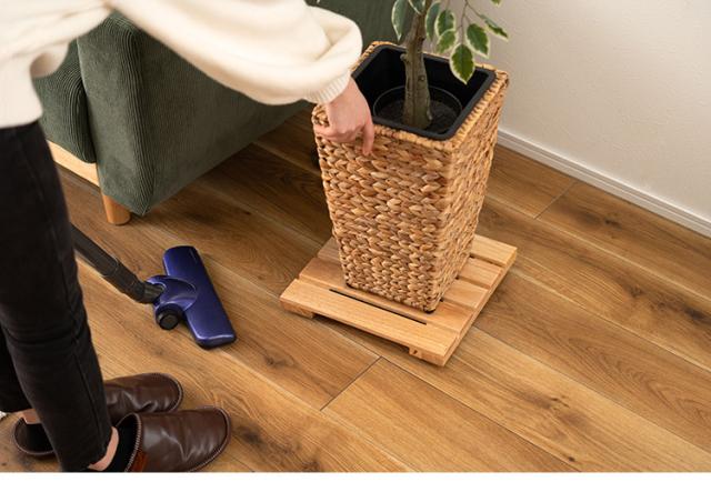 観葉植物のお掃除中や水やりでのちょっとした移動、日光浴や模様替えの際の大きな移動がスムーズに行える、キャスター付きのプランターベース。