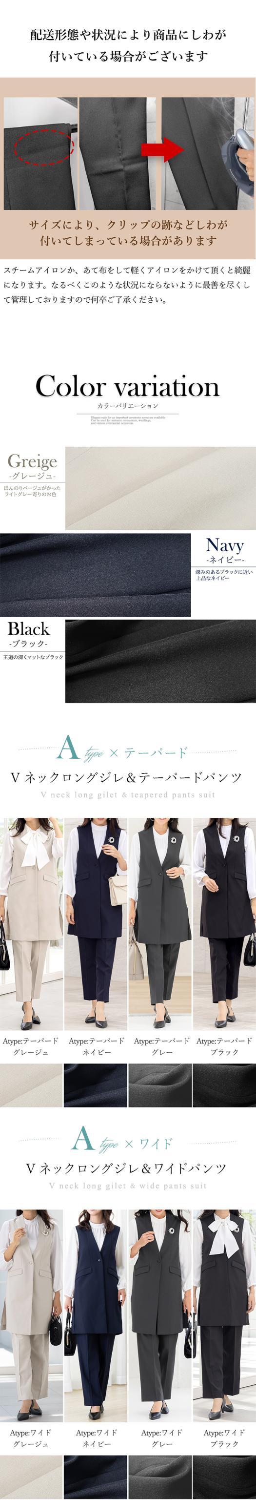 セレモニーからビジネスシーンまで使いやすい「ブラック」「ネイビー」「グレージュ」「グレー」をご用意。
