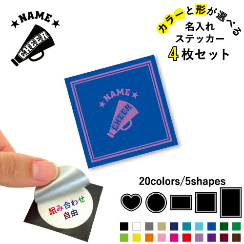 チアメガホン 名入れ文字入れステッカー4枚セット 色と形が選べる シール 多目的ステッカー UVカット 円 ハート 正方形 長方形 スマホステッカー スマホケース 挟む シースルーシール 見せる 貼らない スマホ裏
