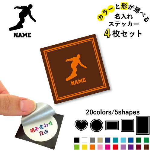 スノーボード1 名入れ文字入れステッカー4枚セット 色と形が選べる シール 多目的ステッカー UVカット 円 ハート 正方形 長方形 スマホステッカー スマホケース 挟む シースルーシール 見せる 貼らない スマホ裏 ウィンタースポーツ
