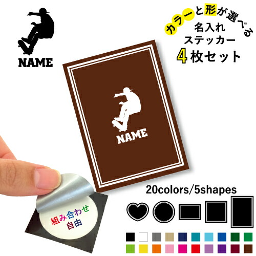 スケボー4 名入れ文字入れステッカー4枚セット 色と形が選べる シール 多目的ステッカー UVカット 円 ハート 正方形 長方形 スマホステッカー スマホケース 挟む シースルーシール 見せる 貼らない スマホ裏 スケートボード 板 ストリート