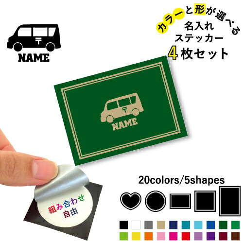 郵便車 名入れ文字入れステッカー4枚セット 色と形が選べる シール 多目的ステッカー UVカット 円 ハート 正方形 長方形 スマホステッカー スマホケース 挟む シースルーシール 見せる 貼らない スマホ裏 乗り物 車 はたらく 趣味