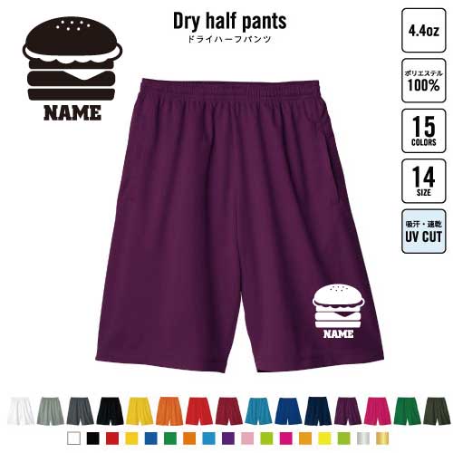 ハンバーガー 名入れドライハーフパンツ ドライ素材 ハーフパンツ スポーツ用 運動用 普段着 部屋着 B系 ストリート系