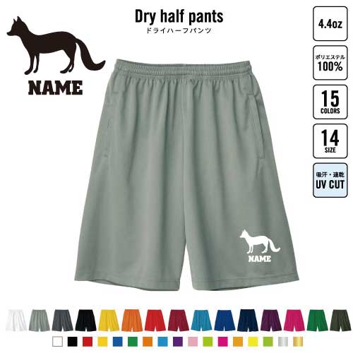 キツネ 名入れドライハーフパンツ ドライ素材 ハーフパンツ スポーツ用 運動用 普段着 部屋着 きつね 狐 フォックス B系 ストリート系