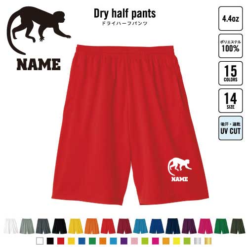 サル 名入れドライハーフパンツ ドライ素材 ハーフパンツ スポーツ用 運動用 普段着 部屋着 猿 モンキー B系 ストリート系