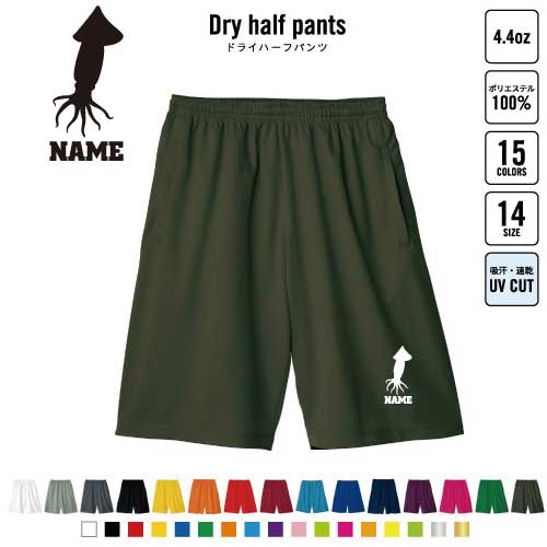 イカ 名入れドライハーフパンツ ドライ素材 ハーフパンツ スポーツ用 運動用 普段着 部屋着 B系 ストリート系