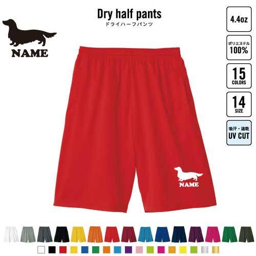 ミニチュア・ダックスフンド 犬種別ドッグシルエット 名入れドライハーフパンツ ドライ素材 ハーフパンツ スポーツ用 運動用 普段着 部屋着 B系 ストリート系