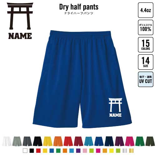 神社 名入れドライハーフパンツ ドライ素材 ハーフパンツ スポーツ用 運動用 普段着 部屋着 鳥居 御朱印 御利益 お守り おみくじ B系 ストリート系