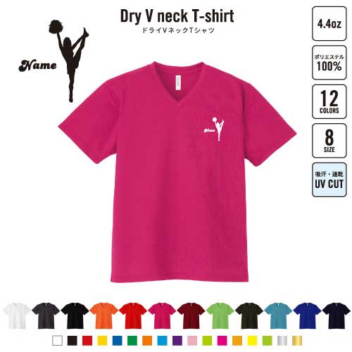 チアガール1 名入れVネックドライTシャツ Vネック V首 ドライ素材 吸水速乾 スポーツ スポーティー インナー 練習着 インドア アウトドア CHEER チアダンス 応援 チアリーディング B系 ストリート系