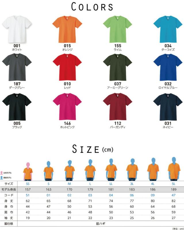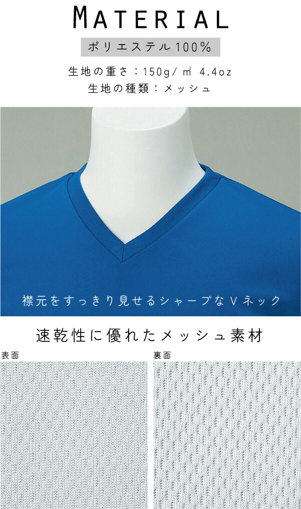 襟元をすっきり見せるシャープなVネック。アクティブシーンで重宝する吸水速乾のドライ素材4.4オンスの薄さで着心地も抜群です♪