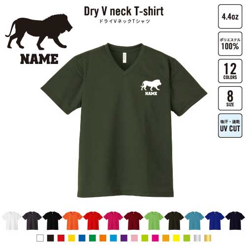 ライオン 名入れVネックドライTシャツ Vネック V首 ドライ素材 吸水速乾 スポーツ スポーティー インナー 練習着 インドア アウトドア 百獣の王 leo Lion B系 ストリート系