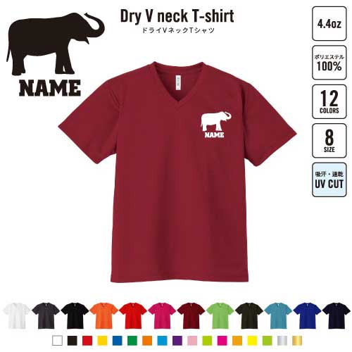 ゾウ 名入れVネックドライTシャツ Vネック V首 ドライ素材 吸水速乾 スポーツ B系 ストリート系
