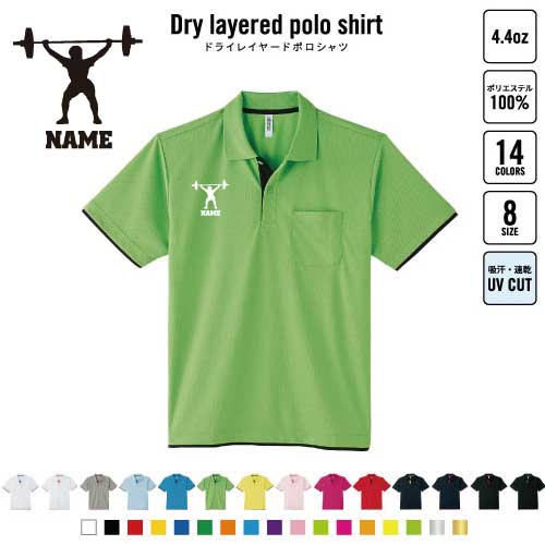 ウエイトリフティング 名入れドライレイヤードポロシャツ ポロシャツ ドライ 吸水速乾 レイヤード ワンポイント 4.4オンス 筋トレ 重量挙げ バーベル おしゃれ スポカジ