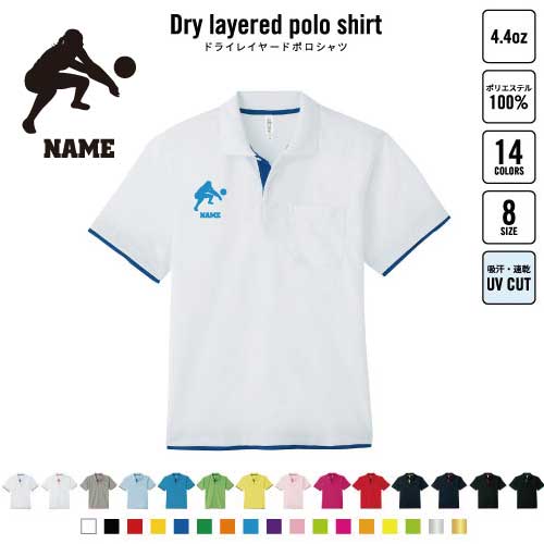 レシーブ 名入れドライレイヤードポロシャツ ポロシャツ ドライ 吸水速乾 レイヤード ワンポイント 4.4オンス バレーボール 排球 おしゃれ スポカジ