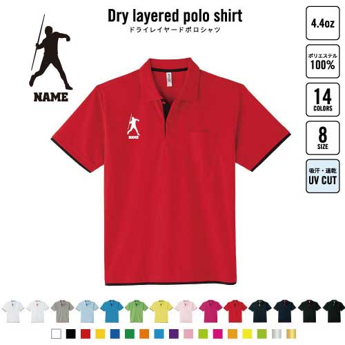 陸上競技・槍投げ 名入れドライレイヤードポロシャツ ポロシャツ ドライ 吸水速乾 レイヤード ワンポイント 4.4オンス スポーツ おしゃれ スポカジ