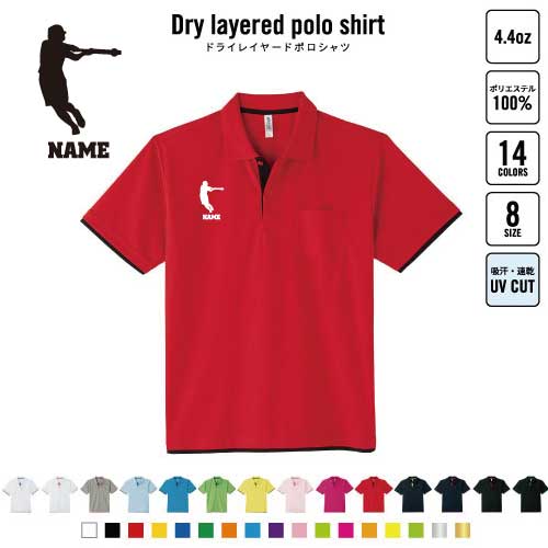 ソフトボール2 名入れドライレイヤードポロシャツ ポロシャツ ドライ 吸水速乾 レイヤード ワンポイント 4.4オンス 野球 甲子園 おしゃれ スポカジ