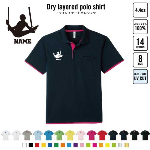 器械体操・つり輪 名入れドライレイヤードポロシャツ ポロシャツ ドライ 吸水速乾 レイヤード ワンポイント 4.4オンス 野球 甲子園 おしゃれ スポカジ