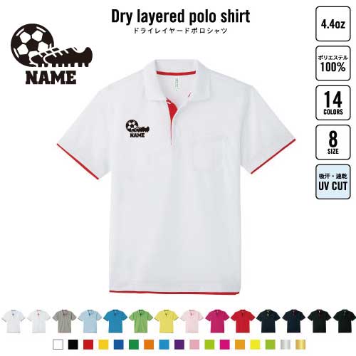 サッカー1 名入れドライレイヤードポロシャツ ポロシャツ ドライ 吸水速乾 レイヤード ワンポイント 4.4オンス 団体 スポーツ 人気 おしゃれ スポカジ