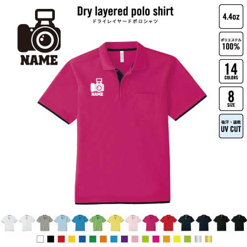 写真部1 名入れドライレイヤードポロシャツ ポロシャツ ドライ 吸水速乾 レイヤード ワンポイント 4.4オンス 一眼レフ カメラ おしゃれ スポカジ