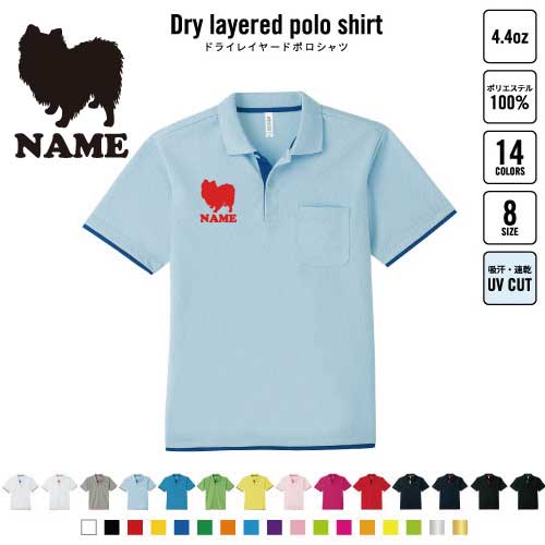 ポメラニアン 犬種別ドッグシルエット 名入れドライレイヤードポロシャツ ポロシャツ ドライ 吸水速乾 レイヤード ワンポイント 4.4オンス スポーツ おしゃれ スポカジ