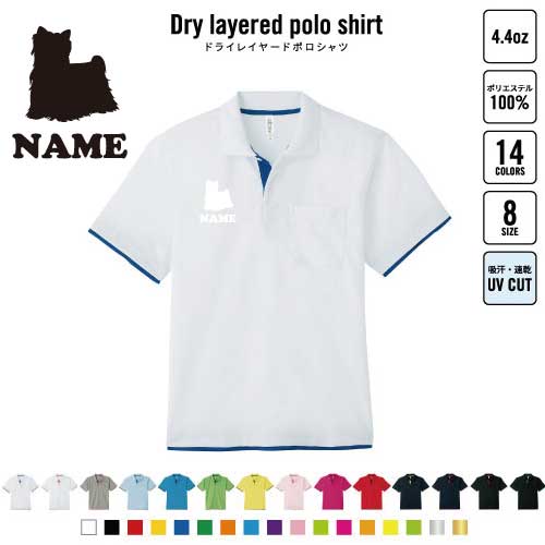 ヨークシャー・テリア 犬種別ドッグシルエット 名入れドライレイヤードポロシャツ ポロシャツ ドライ 吸水速乾 レイヤード ワンポイント 4.4オンス スポーツ おしゃれ スポカジ
