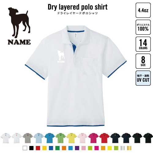 ミニチュア・ピンシャー 犬種別ドッグシルエット 名入れドライレイヤードポロシャツ ポロシャツ ドライ 吸水速乾 レイヤード ワンポイント 4.4オンス スポーツ おしゃれ スポカジ