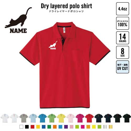 ブリティッシュ・ショートヘアー2 名入れドライレイヤードポロシャツ ポロシャツ ドライ 吸水速乾 レイヤード ワンポイント 4.4オンス 猫 ネコ ねこ キャット ペット おしゃれ スポカジ