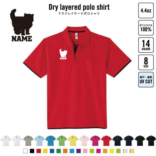 ブリティッシュロングヘアー 名入れドライレイヤードポロシャツ ポロシャツ ドライ 吸水速乾 レイヤード ワンポイント 4.4オンス 猫 ネコ ねこ キャット ペット おしゃれ スポカジ