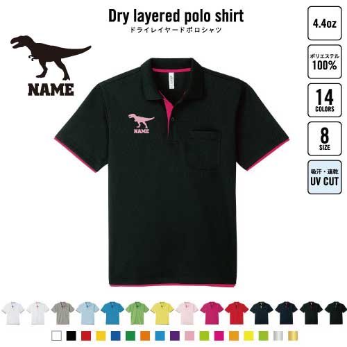 ティラノサウルス3 名入れドライレイヤードポロシャツ ポロシャツ ドライ 吸水速乾 レイヤード ワンポイント 4.4オンス 恐竜 化石 肉食 草食 雑食 海 陸 おしゃれ スポカジ