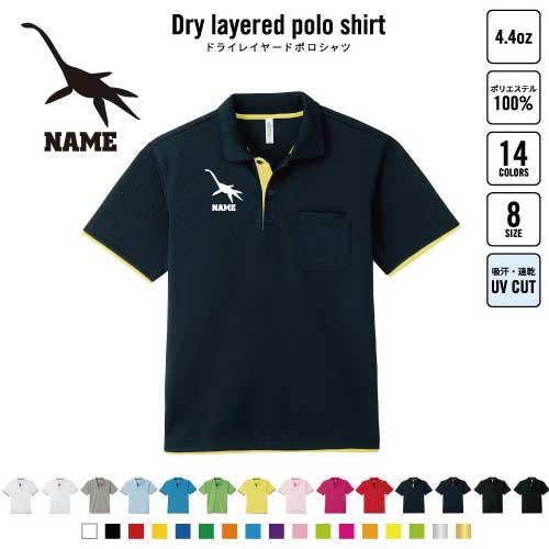 プレシオサウルス 名入れドライレイヤードポロシャツ ポロシャツ ドライ 吸水速乾 レイヤード ワンポイント 4.4オンス 恐竜 化石 肉食 草食 雑食 海 陸 おしゃれ スポカジ