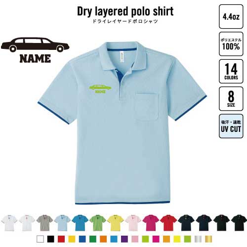リムジン2 名入れドライレイヤードポロシャツ ポロシャツ ドライ 吸水速乾 レイヤード ワンポイント 4.4オンス 乗り物 車 はたらく 趣味 おしゃれ スポカジ