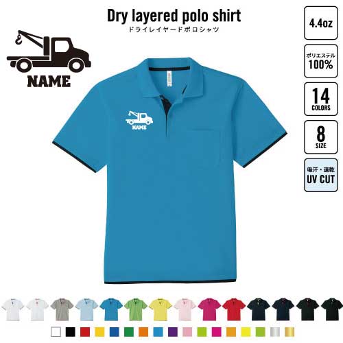 クレーン車 名入れドライレイヤードポロシャツ ポロシャツ ドライ 吸水速乾 レイヤード ワンポイント 4.4オンス 乗り物 車 はたらく 趣味 おしゃれ スポカジ