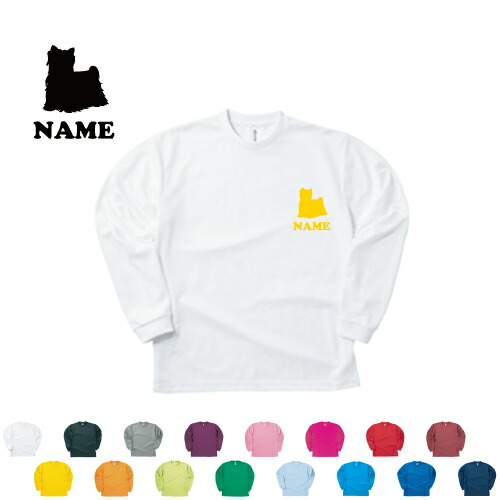 ヨークシャーテリア/名入れ長袖ドライTシャツ 犬種別シルエット ロングスリーブ チームTシャツ クラスTシャツ 文化祭 学園祭 体育祭 サークル ドッグ ポリエステル100 紫外線防止 吸水速乾