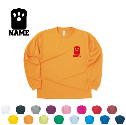 足跡2 名入れ長袖ドライTシャツロングスリーブ チームTシャツ クラブTシャツ クラスTシャツ 学園祭 文化祭 体育祭 イベントTシャツ サークル ポリエステル100 紫外線防止 吸水速乾 猫 ネコ ねこ キャット 肉球