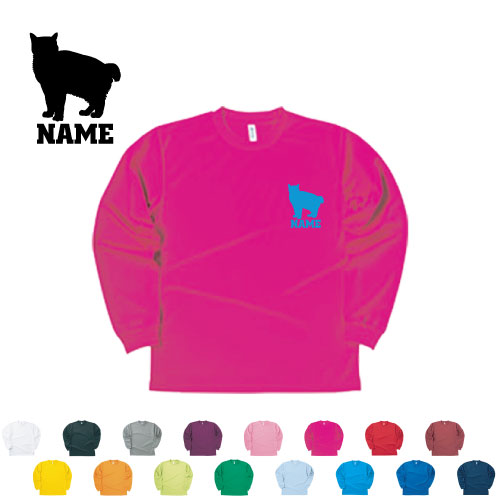 アメリカンボブテイル 名入れ長袖ドライTシャツ オリジナル ロングスリーブ チームTシャツ クラブTシャツ クラスTシャツ 学園祭 文化祭 体育祭 イベントTシャツ サークル ポリエステル100吸水速乾 猫 ネコ ねこ キャット ペット