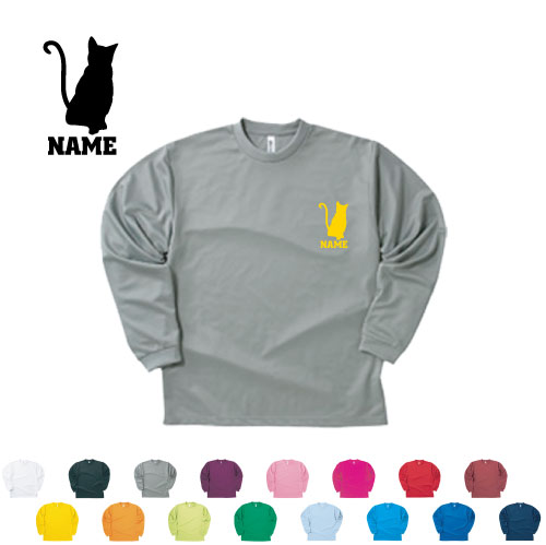 アメリカンショートヘアー2 名入れ長袖ドライTシャツ オリジナル ロングスリーブ チームTシャツ クラブTシャツ クラスTシャツ 学園祭 文化祭 体育祭 イベントTシャツ サークル 紫外線防止 吸水速乾 猫 ネコ ねこ キャット ペット