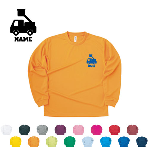はしご車 名入れ長袖ドライTシャツロングスリーブ チームTシャツ クラブTシャツ クラスTシャツ 学園祭 文化祭 体育祭 イベントTシャツ サークル ポリエステル100 紫外線防止 吸水速乾 乗り物 車 はたらく 趣味