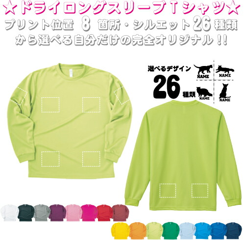 「猫2」選べるプリント箇所/ 名入れ長袖ドライTシャツロングスリーブ チームTシャツ クラスTシャツ 文化祭 学園祭 体育祭 サークル ポリエステル100 紫外線防止 吸水速乾 プレゼント グッズ 卒業 記念 お揃い