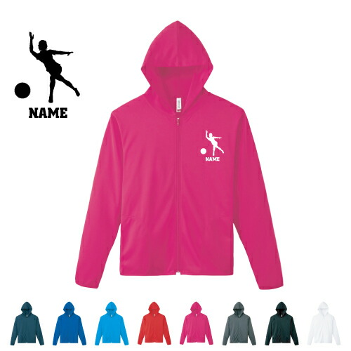 ボウリング2/名入れドライジップパーカー お名前入り オリジナル セミオーダーメイド ロングスリーブ チームTシャツ クラブTシャツ サークル100 紫外線防止 吸水速乾 スポーツウェア フィットネスウェア ダイエット ジョギング 有酸素運動