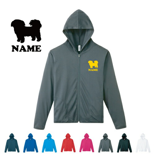 シーズー/名入れドライジップパーカー 犬種別シルエット お名前入り ロングスリーブ チームパーカー クラブパーカー サークル ドッグ100 紫外線防止 吸水速乾 スポーツウェア フィットネスウェア ダイエット ジョギング 有酸素運動