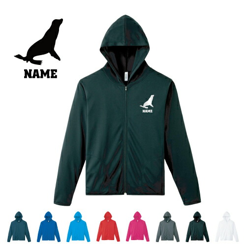 「アシカ」名入れドライジップパーカー お名前入り ロングスリーブ チームTシャツ クラブTシャツ サークル100 紫外線防止 吸水速乾 アイテム ウミオソ、オットセイ、Sea lion スポーツウェア フィットネスウェア