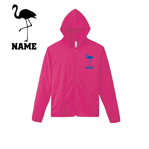 フラミンゴ/名入れドライジップパーカー お名前入り オリジナル セミオーダーメイド ロングスリーブ チームパーカー クラブパーカー サークル flamingo100 紫外線防止 吸水速乾 スポーツウェア フィットネスウェア