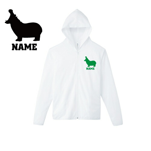 カバ/名入れドライジップパーカー お名前入り オリジナル セミオーダーメイド ロングスリーブ チームパーカー クラブパーカー サークル Hippopotamus、河馬100 紫外線防止 吸水速乾 スポーツウェア フィットネスウェア