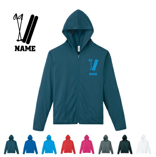 スキー 名入れドライジップパーカー お名前入り オリジナル セミオーダーメイド ロングスリーブ チームTシャツ クラブTシャツ サークル100 紫外線防止 吸水速乾 雪 冬 板 ブーツ ポール スポーツウェア フィットネスウェア