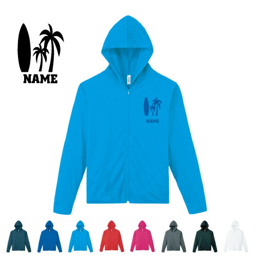 サーファー 名入れドライジップパーカー お名前入り オリジナル セミオーダーメイド ロングスリーブ チームTシャツ クラブTシャツ サークル100 紫外線防止 吸水速乾 波乗り ボード 夏 スポーツウェア フィットネスウェア