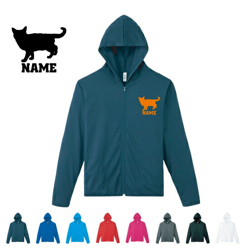 アメリカンショートヘアー1 名入れドライジップパーカー お名前入り ロングスリーブ チームTシャツ クラブTシャツ サークル100 紫外線防止 吸水速乾 猫 ネコ ねこ キャット ペット スポーツウェア フィットネスウェア