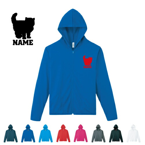 ブリティッシュロングヘアー 名入れドライジップパーカー お名前入り ロングスリーブ チームTシャツ クラブTシャツ サークル100 紫外線防止 吸水速乾 猫 ネコ ねこ キャット ペット スポーツウェア フィットネスウェア