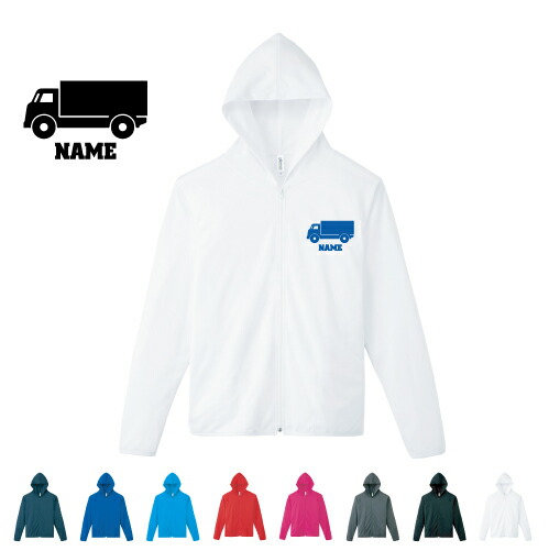 トラック1 名入れドライジップパーカー お名前入り オリジナル セミオーダーメイド ロングスリーブ チームTシャツ クラブTシャツ サークル100 紫外線防止 吸水速乾 乗り物 車 はたらく 趣味 スポーツウェア フィットネスウェア