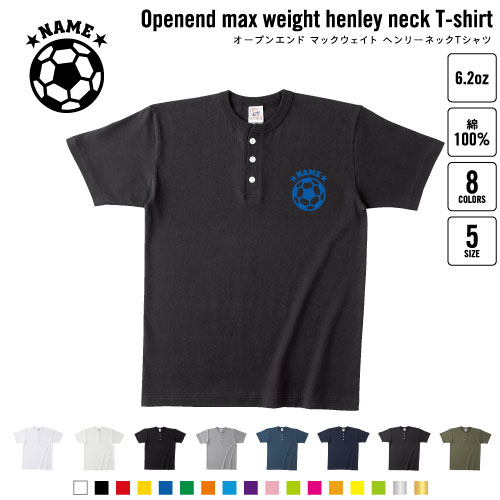 サッカーボール 名入れヘンリーネックTシャツ ヘンリーネック 名入れTシャツ 首元ネコ目ボタン ボタンTシャツ 首元アクセント メンズ レディース