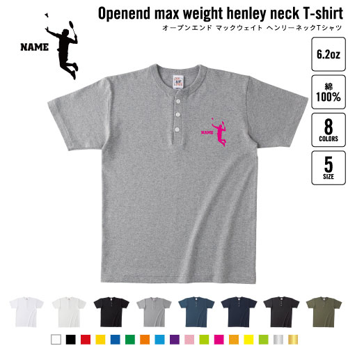 男子バドミントン 名入れヘンリーネックTシャツ ヘンリーネック 名入れTシャツ 首元ネコ目ボタン ボタンTシャツ 首元アクセント メンズ レディース 部活 羽球